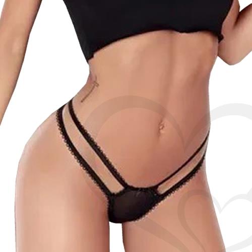 Tanga De Red Roja Con Puntilla Negra Femenina